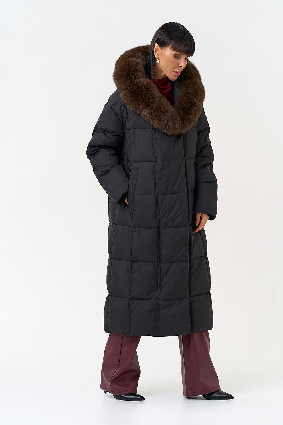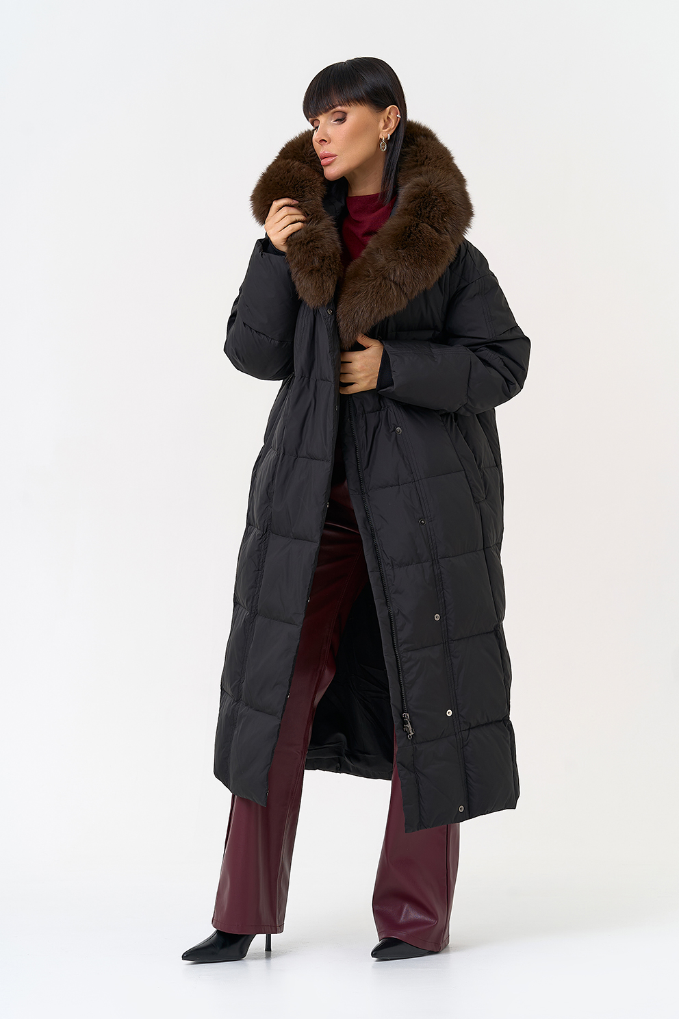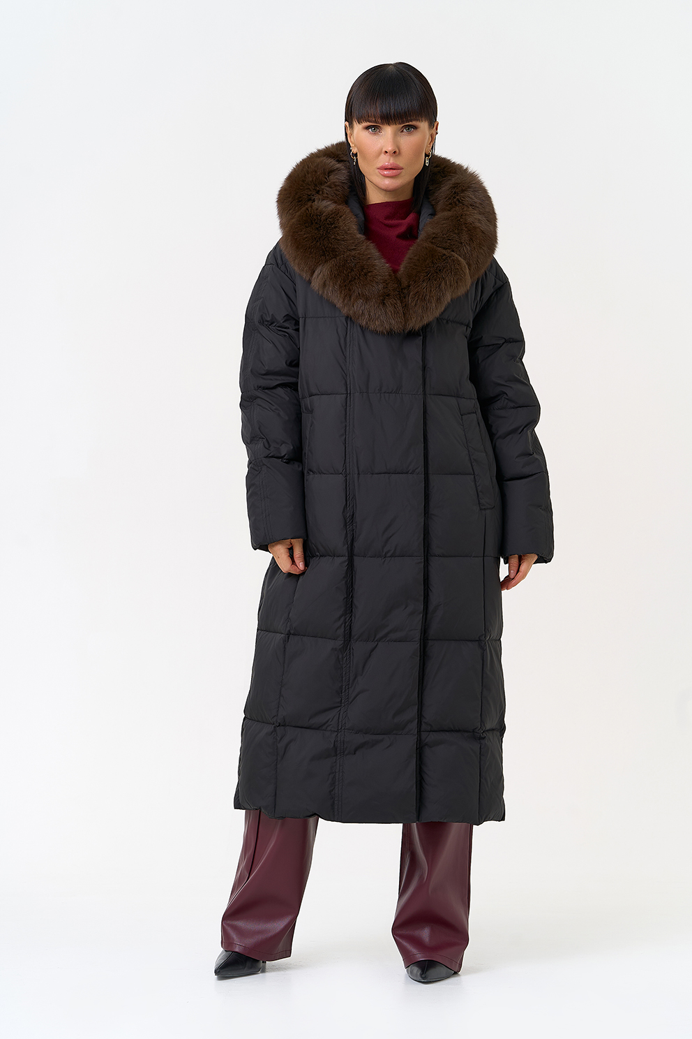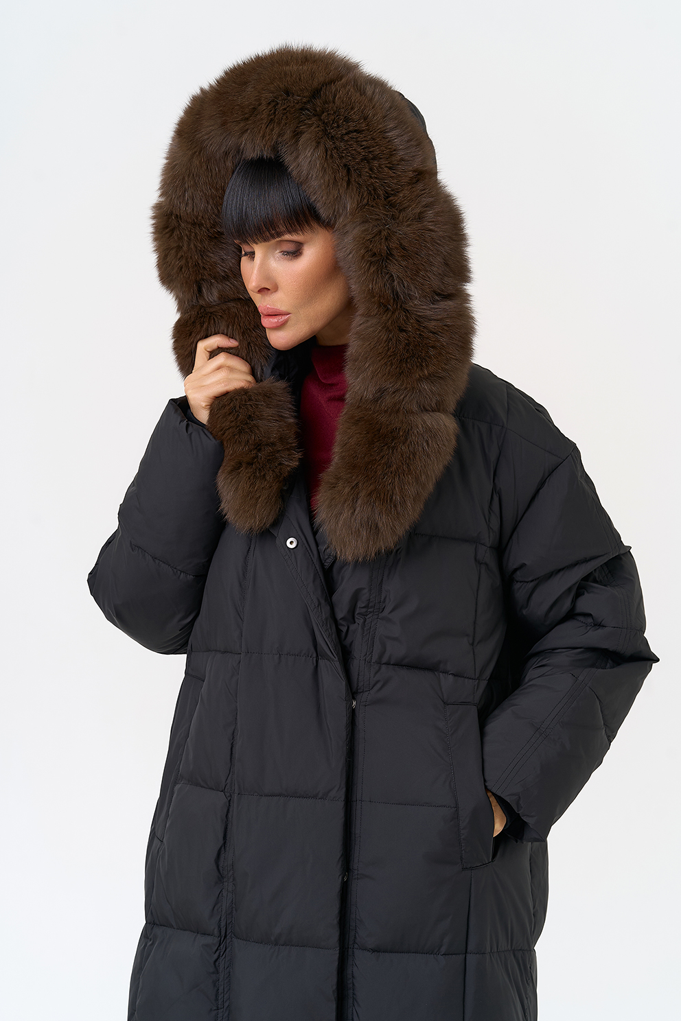 Отделка воротника - песец, цвет коричневый
