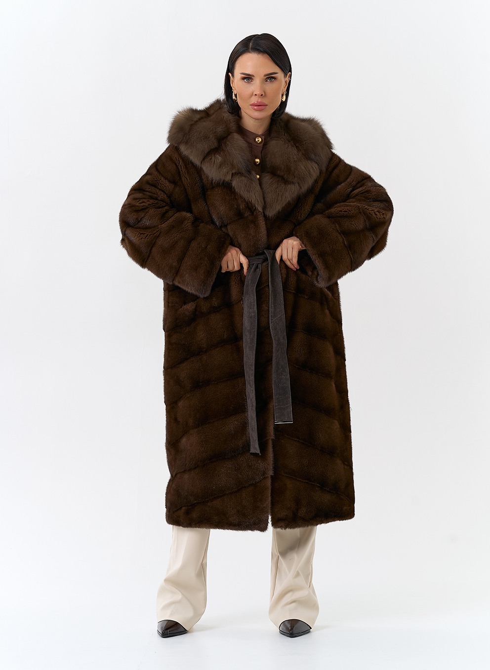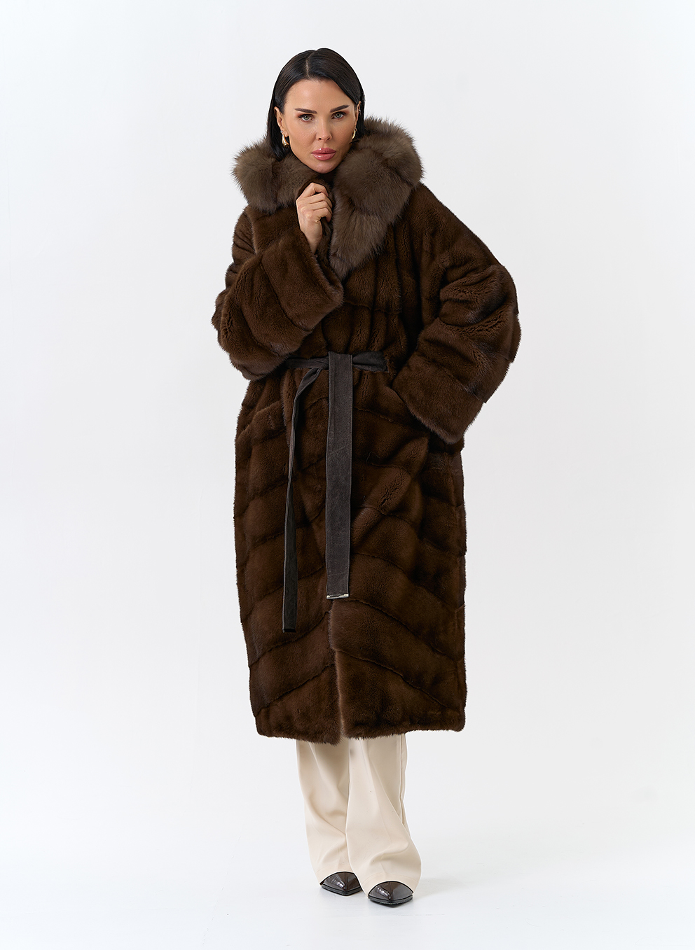 Тип ворота - капюшон, отделка куница